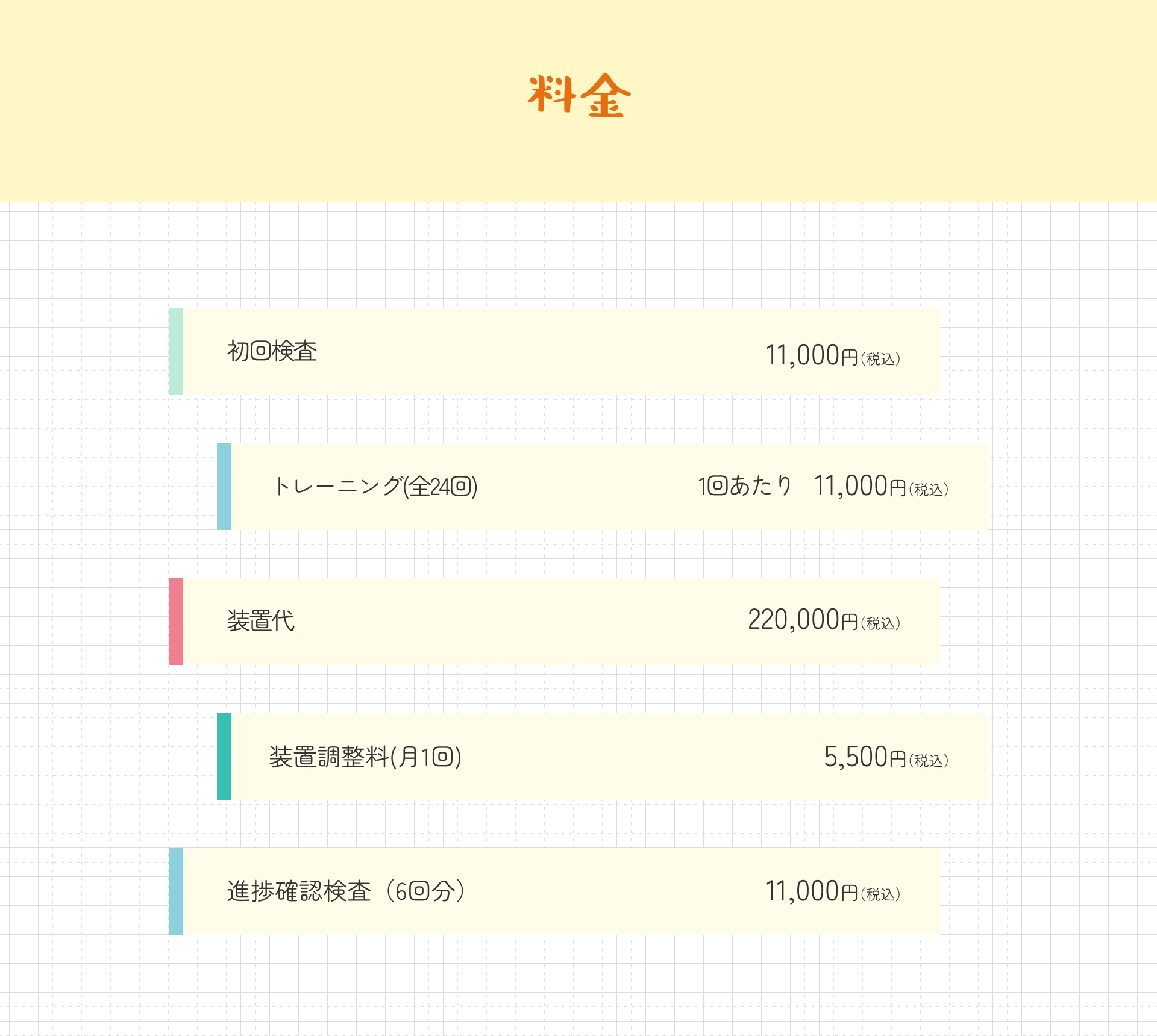※お口の状態によって必要な治療や使用装置が異なり、治療費も違ってきます。
